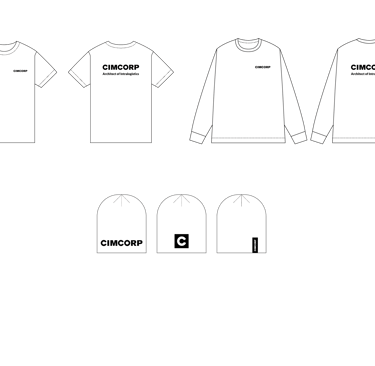 T-shirts and long-sleeved versions follow the same layout: small CIMCORP logo on front left, large logo and slogan on back.